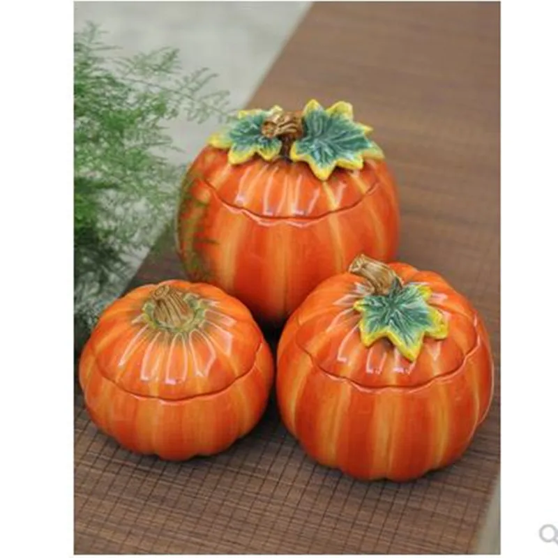 2020 Creative Ceramic Pumpkin Storage Jar Candy Jar Storage Jar Home Office Desktop Decoration Holi